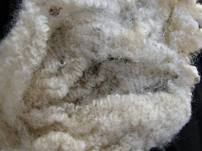I also washed a bit of Coopworth, which I purchased from Sandy in California. This Coopworth fleece is truly beautiful. It's from a young sheep named Sierra Silver. I hope to spin and knit the sweater named Moonlight by Kim Hargreaves - the pattern appeared in Rowan 34. So, my sweater already has a name - Sierra Silver Moonlight. Ahhh... I can hardly wait!
